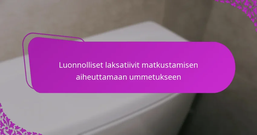 Matkustamisen aiheuttama ummetus on yleinen ongelma, joka johtuu ruokavalion muutoksista, nestehukasta ja stressistä matkustamisen aikana. Luonnolliset laksatiivit, kuten kuitupitoiset ruoat, yrttiteet ja probiootit, voivat tuoda helpotusta edistämällä säännöllisiä suolen liikkeitä. Ymmärtäminen siitä, miten näitä keinoja voi turvallisesti käyttää, voi parantaa ruoansulatustasi matkasi aikana. Mitkä ovat matkustamisen aiheuttaman ummetuksen syyt? Matkustamisen aiheuttama ummetus johtuu pääasiassa ruokavalion…